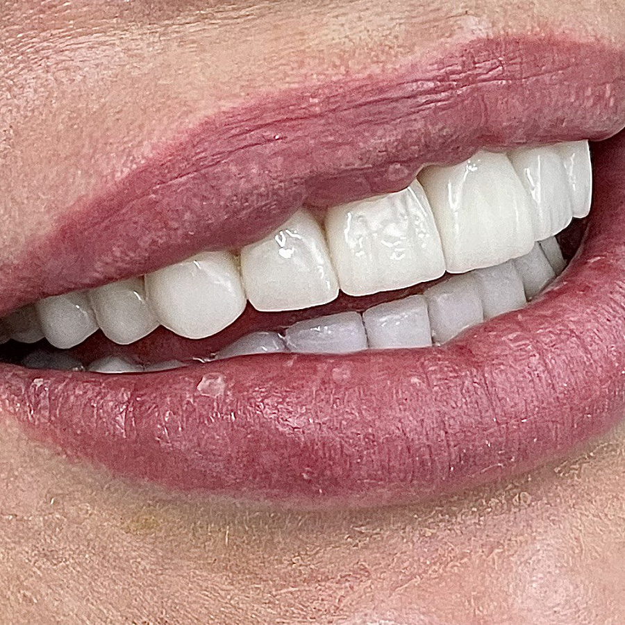 6. После хирургического лечения. Поднятие прикуса на керамических накладках и установка виниров на верхней и нижней челюсти (доктор Бобринская А.Р.)