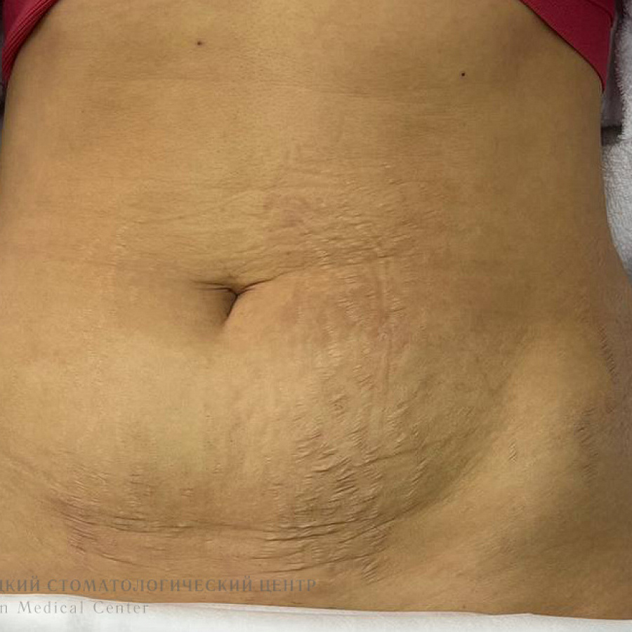 Результат: произвели однократную процедуру игольчатого RF-лифтинга Vivace, после первого посещения наблюдается устойчивый результат, где растяжки стрии стали менее заметны.