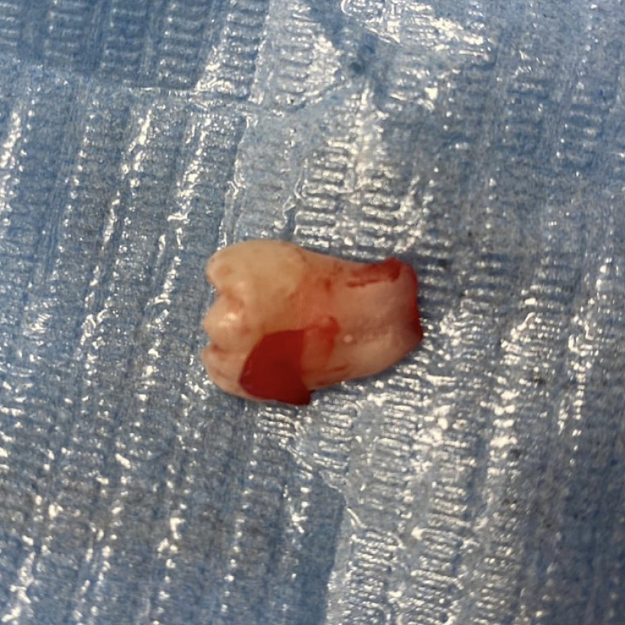 В лунку обязательно нужно было положить PRF (сгусток крови, который мы берём у пациента до удаления зуба и центрифугируем в специальном аппарате). Это необходимо для более благоприятного и прогнозируемого заживления.