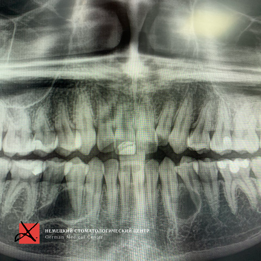 Пациент направлен врачом-ортодонтом с целью удаления ретинированных дистопированных зубов. У пациента аномалия: лишние зубы в передне-боковых отделах.